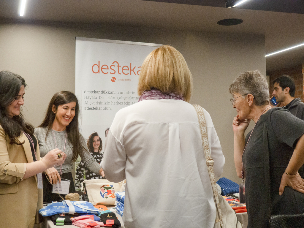 Gecede Hayata Destek’in sosyal tasarım pazarı destekar’ın standı da yoğun ilgi gördü.